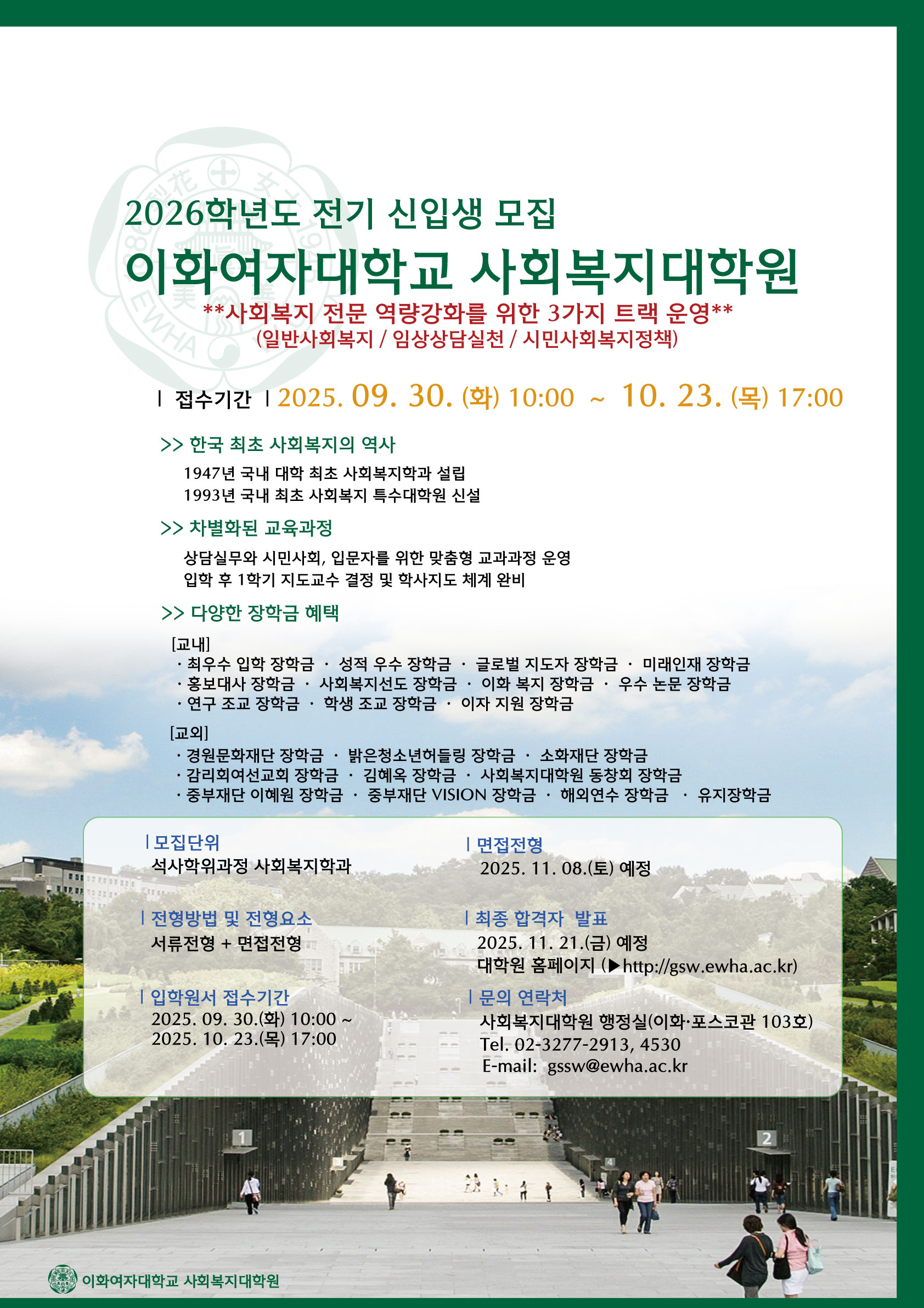 2026학년도 전기 사회복지대학원 신입생 모집안내